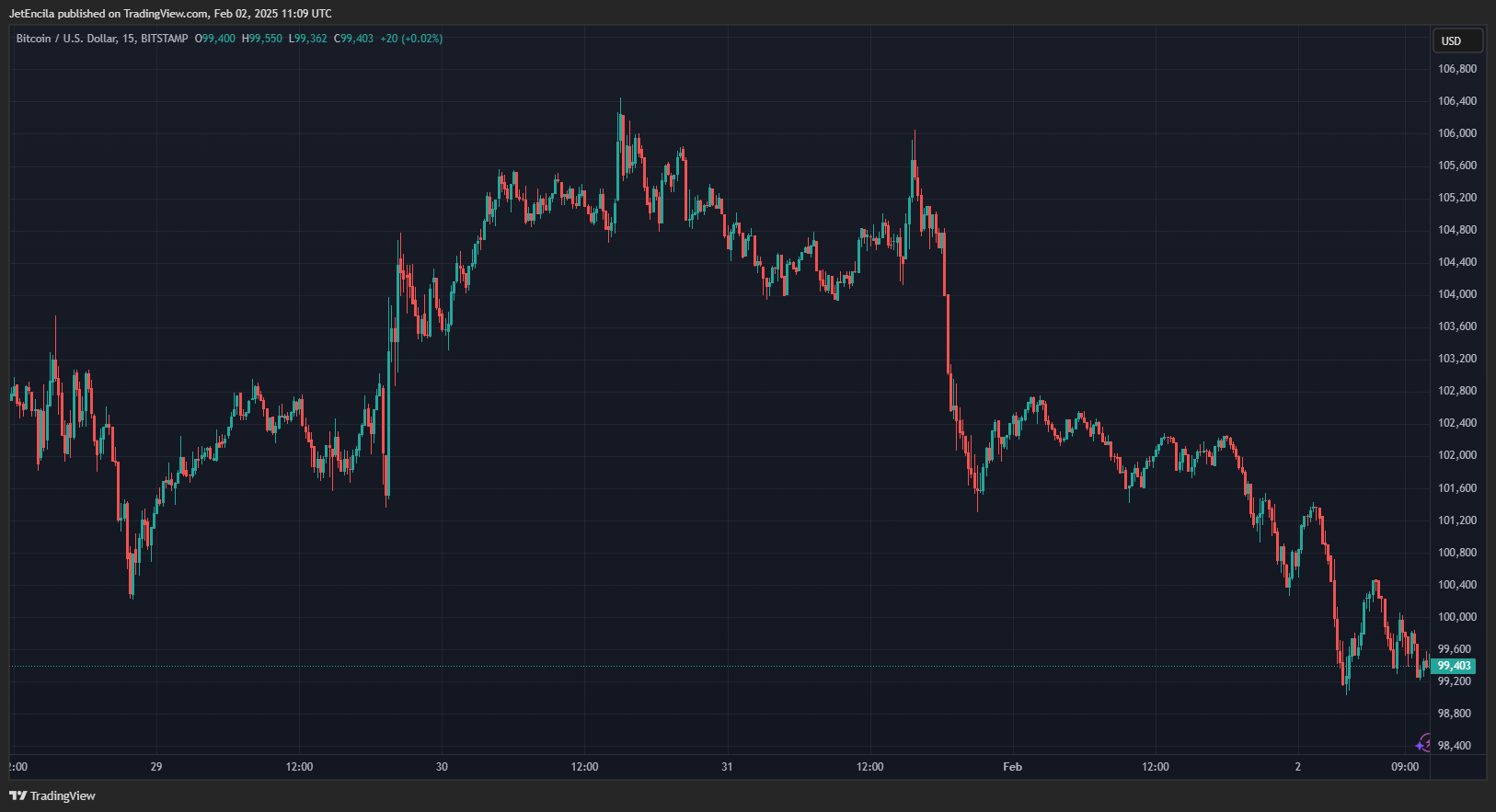 BTC is currently trading at $99,403. Chart: TradingView
