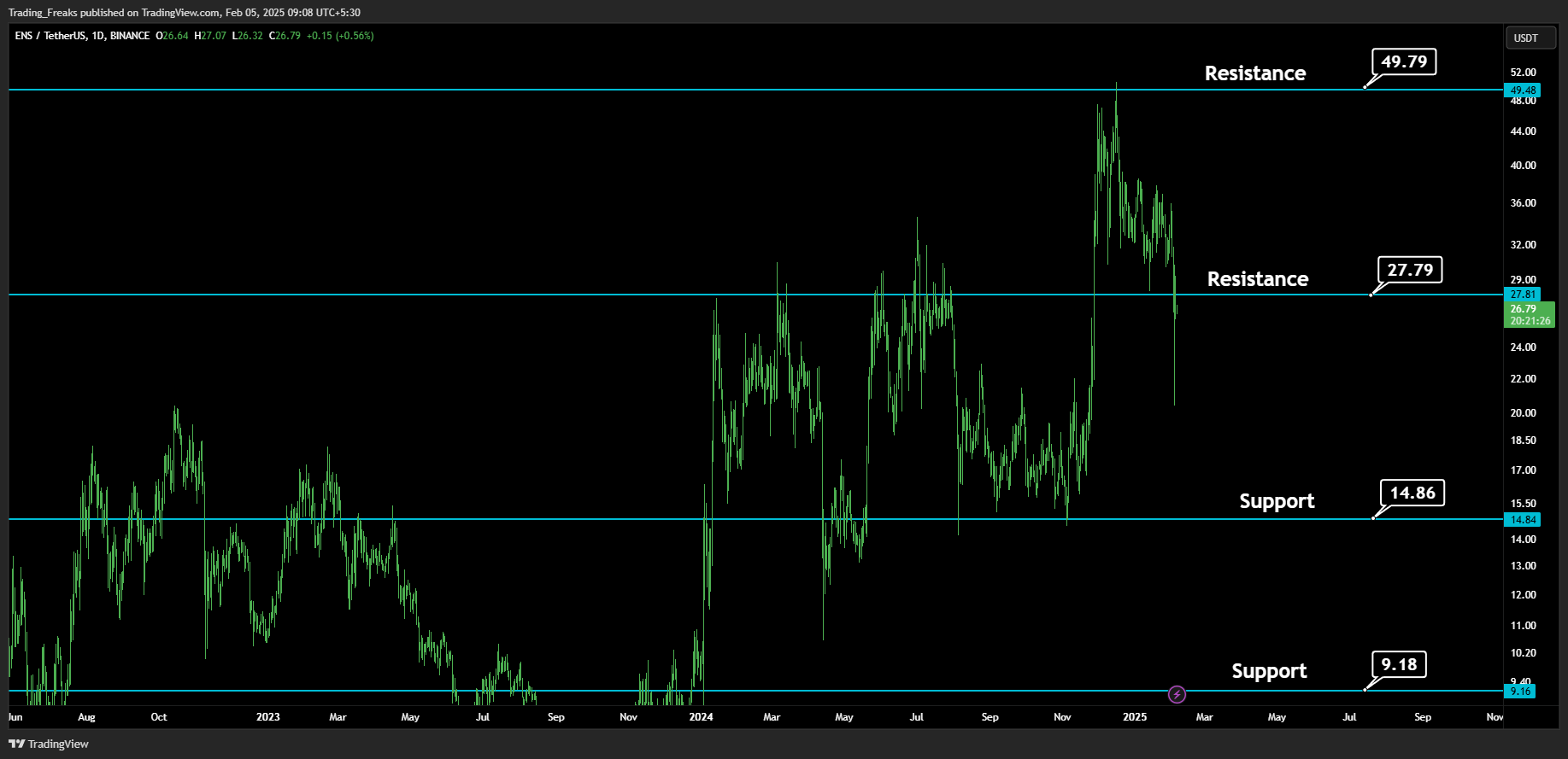 From the above chart, we can analyze and identify the following as resistance and support levels of Ethereum Name Service (ENS) for 2025.