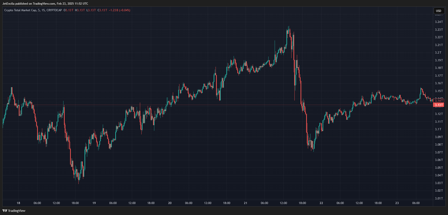 Total crypto market cap currently at $3.13 trillion. Chart: TradingView