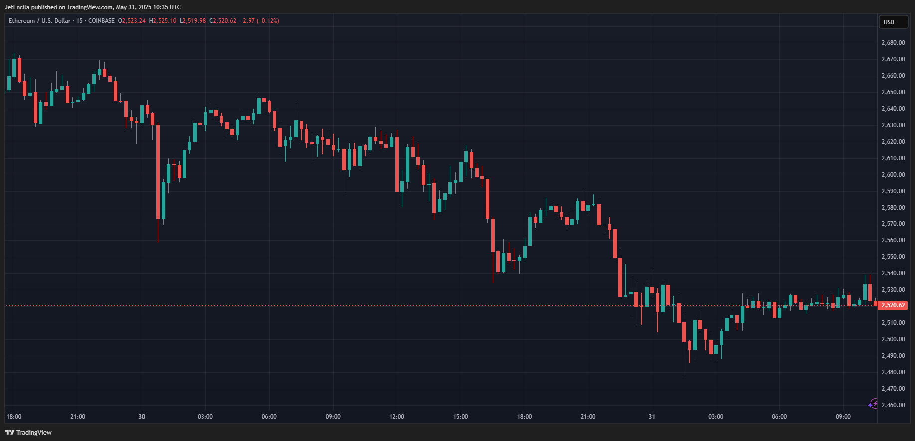 ETH was trading at $2,520 at the time of the filing, down 2.31% in 24 hours, based on Coingecko data. The timing of the purchase, and how much Ether they actually buy, could depend on the market. But the message is clear: SharpLink is going all in on Ethereum.